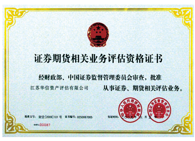 • 證券期貨相關(guān)業(yè)務(wù)評估資格證書